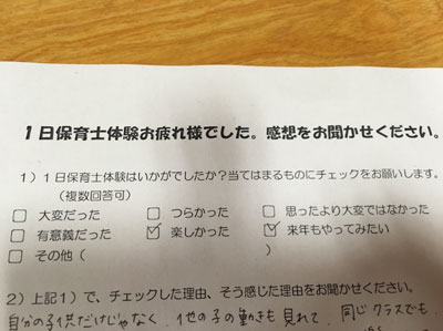 半年前から決まっていたこの行事。 なんとしたタイミングでしょう(人´∀`*).。:*+゜゜+*:.。.*:+☆ 託児所オープンを前にして すご~~く勉強になりました!! 「これ取り入れたら喜ばれるな」というものを さっそくマニュアルに作ってみました! アンケートにも素直に 「今後やる託児所の勉強になった」と書くと それ見た園長先生が飛んできて ままケアの理念や活動に共感してくれ パンフレットを求められましたε=ε=(ノ≧∇≦)ノキャー 本当にママに寄り添いたいという気持ちを持って集まった メンバーで作るサービスですからγ(▽´ )ツヾ( `▽)ゞ
