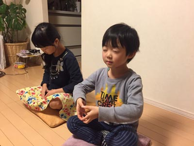私がストレッチをやっている脇で、 何故かウチの子供達は座禅??( ゚Д゚)