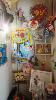 ずっと このクローゼットの中は子供達の作品コーナーにしてあげたかったんです(*´ω`*)♫