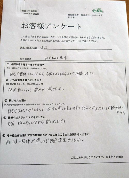 M.I様も毎回 施術後に 「カラダが かる~~い☆」 と、言って喜んで下さいます♪