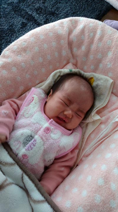 いつも施術中に そばでお利口に眠っている、現在2ヶ月の赤ちゃん♪(女の子) すごくタイミング良く 、施術が終わったあとにパッと目を覚まし、うぇぇ~ん◇と ひと泣き☆☆