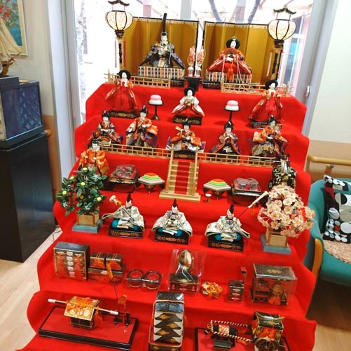 仕事では、ディサービスなどの福祉施設を訪問し、利用者様のマッサージを行う事もあるのですが、どの施設にも立派な「雛人形」が飾られていました♪!